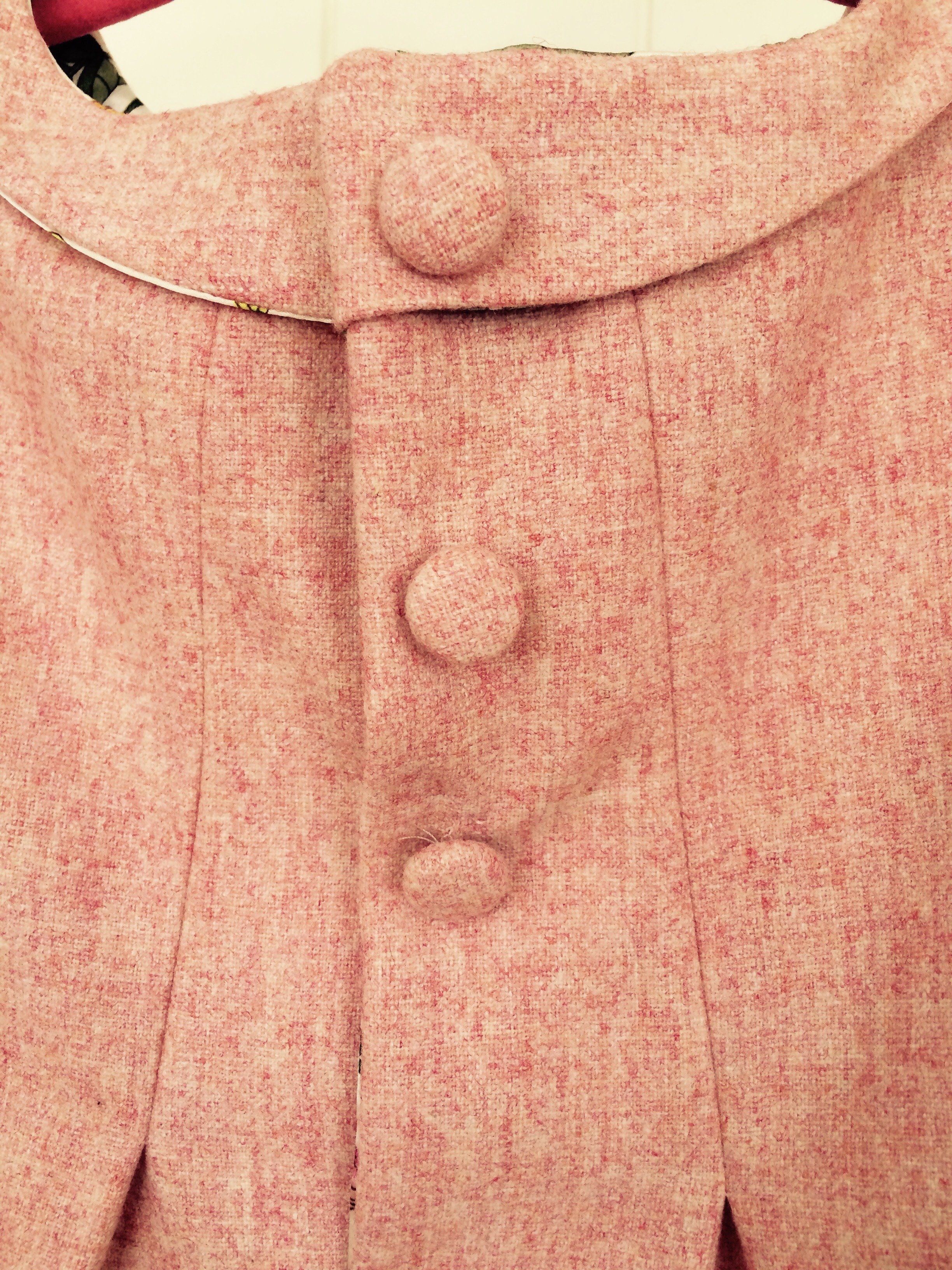 Rosa ullflanell med silkefor og knapper trukket i samme stoffet😊