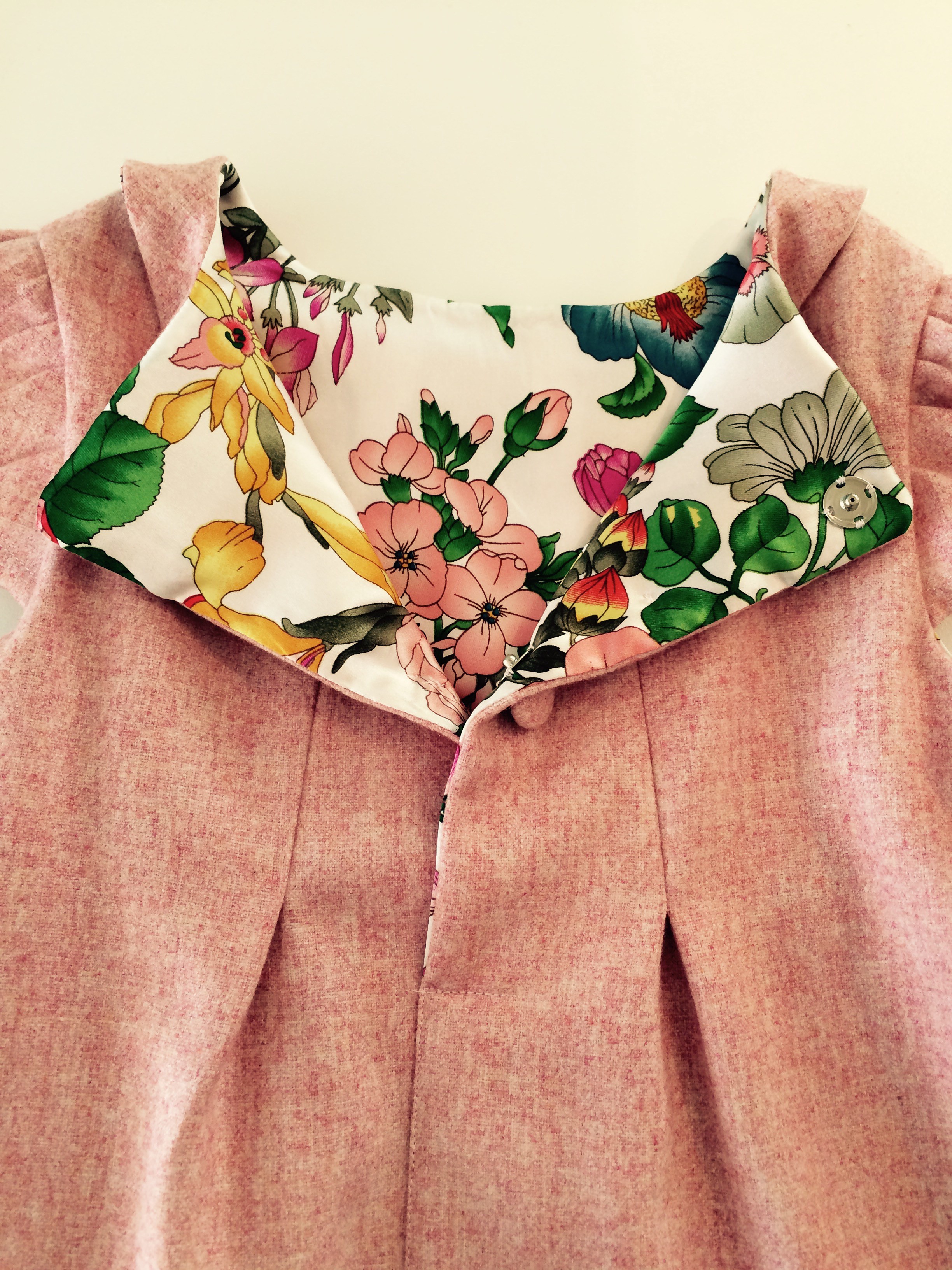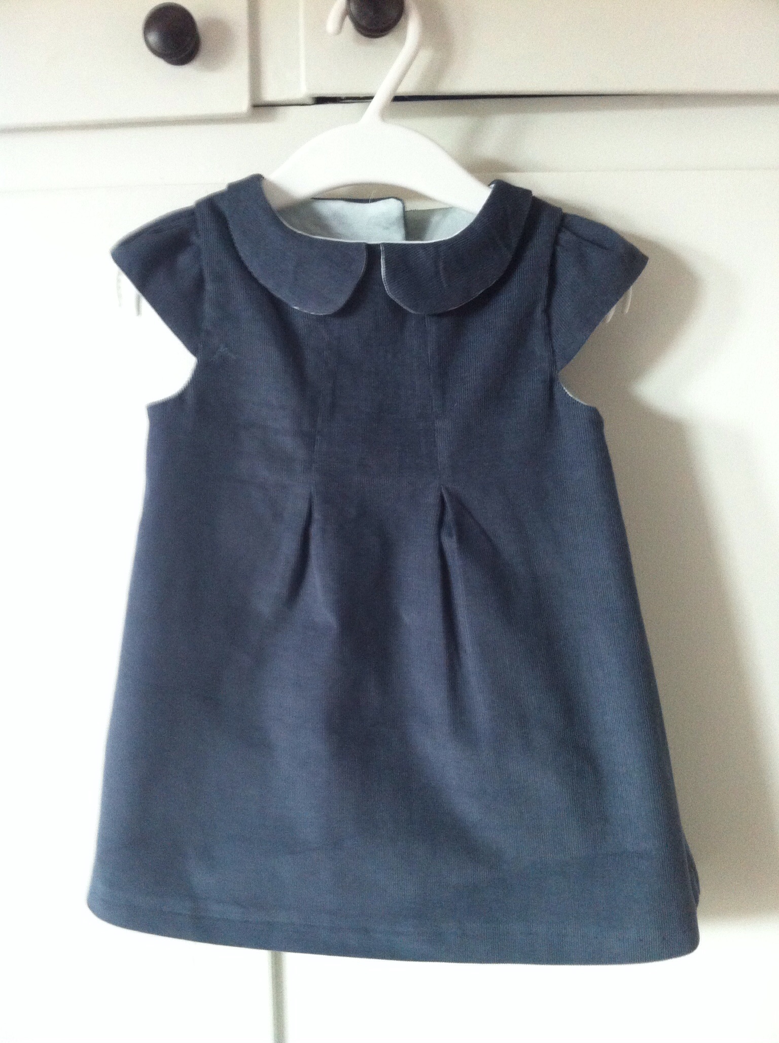 Jeg har sydd den i ullflanell, fin thaisilke og fløyel. På denne måten kan den brukes til alt fra dåpskjole i silke til hverdagskjole i cordfløyel, jeg kommer nok til å lage denne flere ganger etter hvert som hun vokser seg til. 😊
