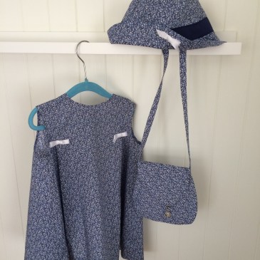 Jeg har vært i London på stoff-shopping, og kjøpt mange nydelige Liberty-stoffer som jeg gleder meg til å produsere klær til barn og barnebarn av. Førstemann til å få er lille Frøken Fryd, og et småmønstret stoff fra Liberty i tynn bomullspoplin ble brukt til å «prøvesy» en kjole fra et mønster fra 60-tallet, som … Mer Kjole i mønster fra 60-tallet, med veske og hatt