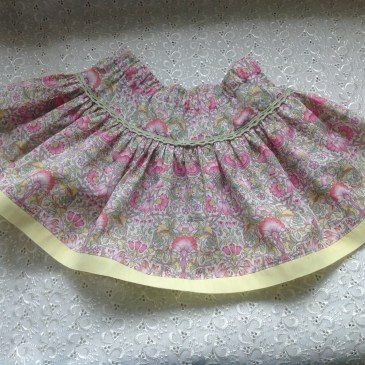 En god kollega ønsket å bestille kjole til sitt lille barnebarn, gjerne i glade farger. Da falt valget på rød bomullspoplin med hvite prikker, kantet med blå bånd og blå og rød blomst på brystet. Også denne gangen har valget falt på the Bella dress, et mønster fra mychildhoodtreasures.com Se så søt hun ble, her kledt … Mer En liten frøken i rødprikkete kjole