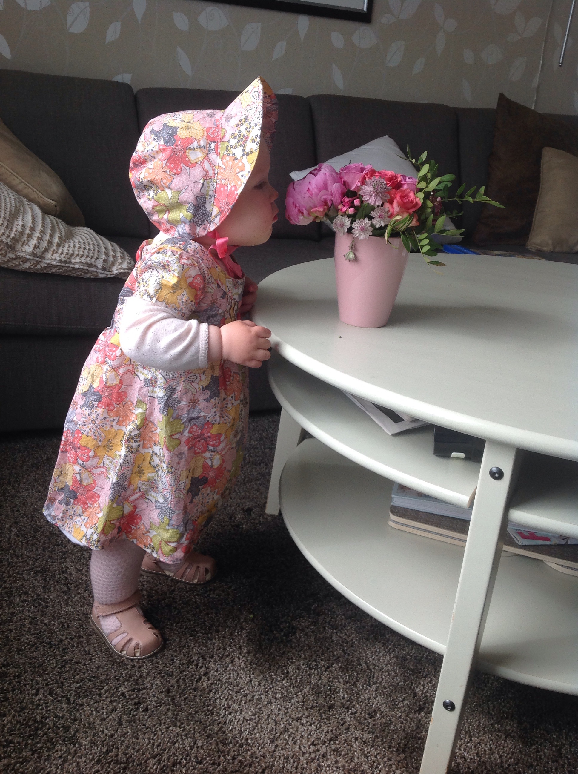 Jeg heter Birgitte, og var så heldig å bli mormor til ei lita jente for ett år siden. Dette inspirerte meg til å friske opp noen svært så rustne syferdigheter. Jeg sydde nemlig klær til mine egne barn når de var små, men det er 25 – 30 år siden. På den tiden var barneklær mye dyrere enn i dag, så jeg sydde for å spare penger, men også den gangen mest for at det var gøy. Men for ett år siden kom altså inspirasjonen tilbake: To nye symaskiner ble innkjøpt, en vanlig mekanisk og en overlock (overlock hadde jeg knapt nok hørt om, men her skulle det altså syes!!😊